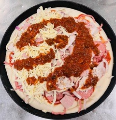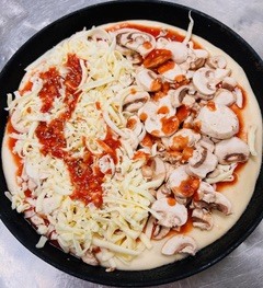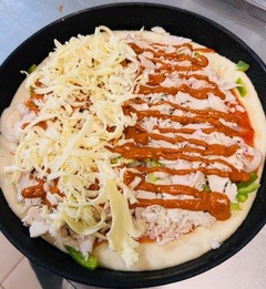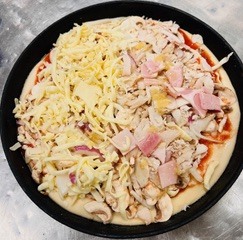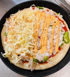 Tomato sauce, onion, capsicums, Grill chicken, Tandoori sauce, cheese