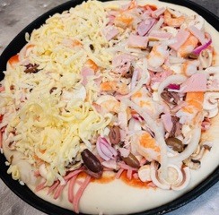 Tomato, Cheese, Ham, Mushroom, Mild Salami, Onion, Capsicum, Olives, Anchovies