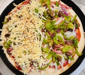 Tomato, Cheese, Ham, Mushroom, Olives