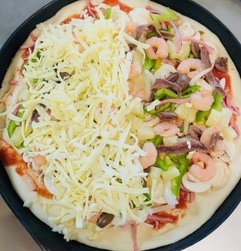 Tomato, Cheese, Ham, Mushroom, Onion, Bacon, Olives, Shrimp