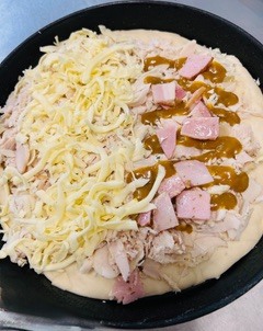 Satay Sauce, Cheese, Chicken, Bacon